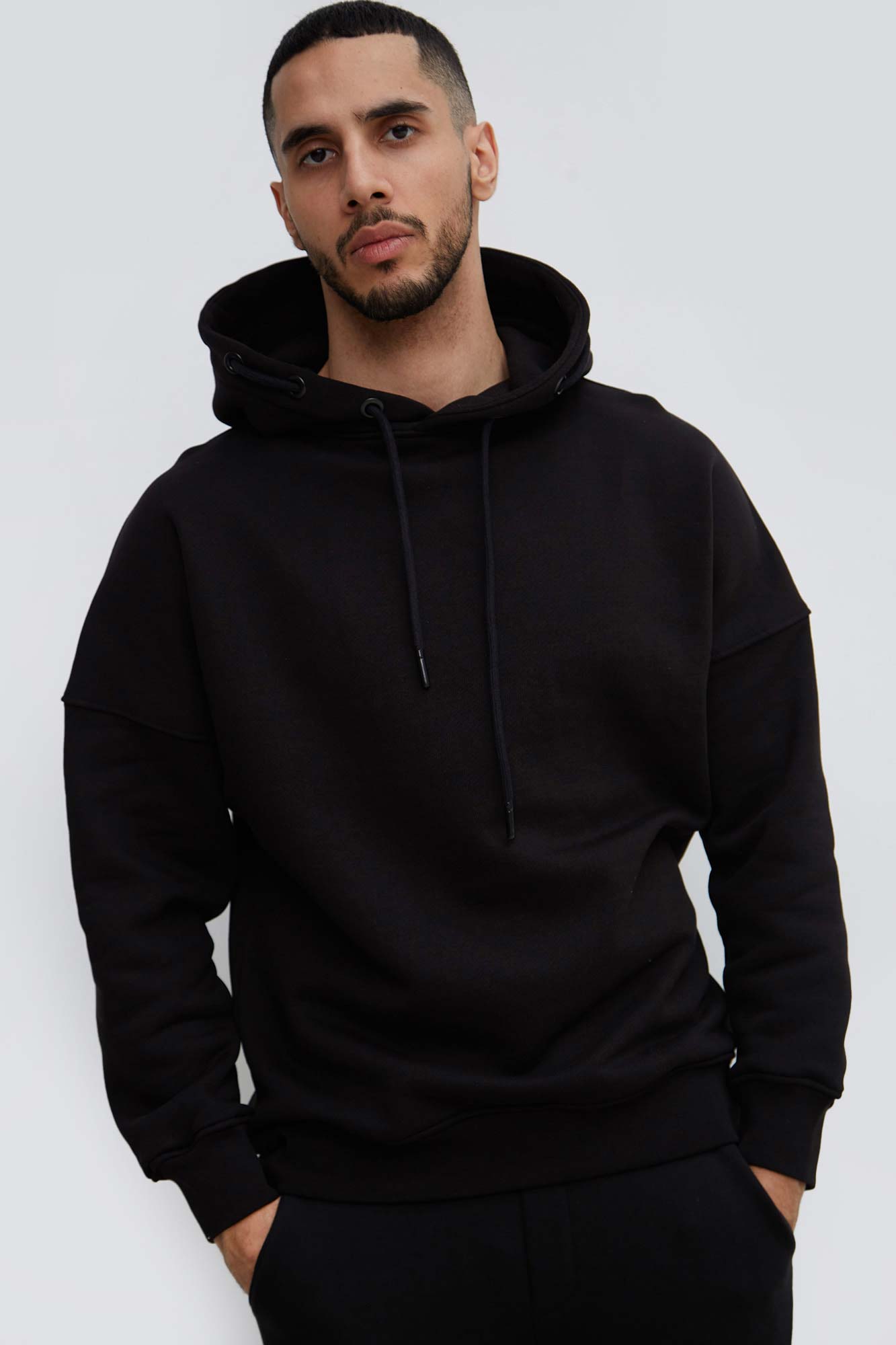 Комфортное худи черного цвета из футера 3хнитки премиального качества с составом 100% хлопок имеет комфортную посадку за счёт спущенной линии плеча. Спину изделия украшает крупный, контрастный логотип бренда, выполненный в технике накатки. Функциональность изделию придаёт шнурок, пущенный через люверсы вдоль всего капюшона для лучшего регулирования. Для создания идеального костюма мы предлагаем обратить внимание на брюки артикула VM-231-20-040-010_BLACK.