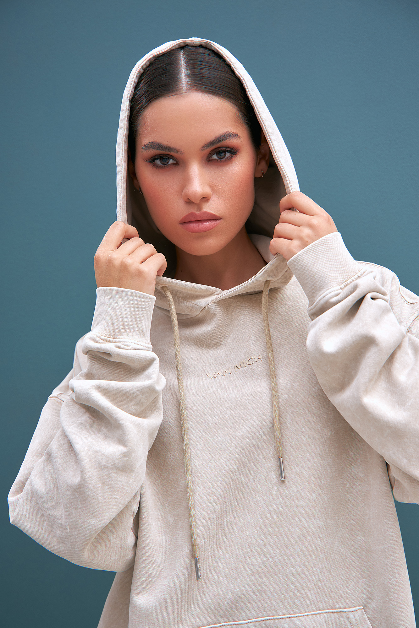 Откройте для себя объёмный худи в молочно-бежевом цвете, который станет ключевым элементом вашего повседневного гардероба. Окрашенный по технологии stone-washed, этот худи приобретает уникальный винтажный "состаренный" вид, добавляя образу особого шарма и стиля.